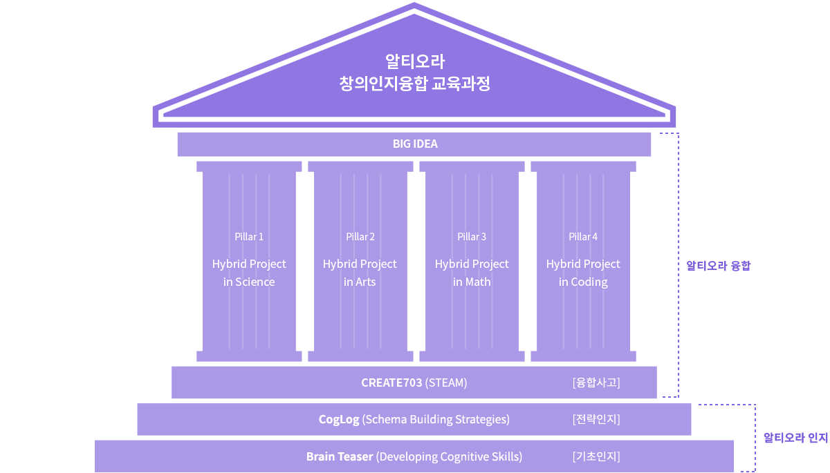 국제학교 K-6 및 초등학교 1-6학년의 수학, 과학, 기술, 체육, 미술 교육 과정의 핵심 원리들을 12가지 BIG IDEA를 모티브로 하여 담아낸 프로젝트 커리큘럼으로 알티오라 방과 후 교육과정으로 운영됩니다.