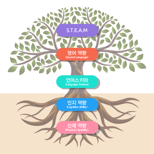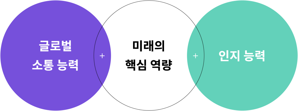 미래의 핵심 역량인 글로벌 소통 능력과 인지 능력의 향상을 위해 디자인되었습니다. 무서운 속도로 정보와 지식이 축적되고 공유되는 초연결 글로벌 시대는 세계와 소통할 수 있는 언어 능력과 합리적으로 사고할 수 있는 인지 능력을 동시에 요구합니다. 언어 능력은 정보와 지식을 탐색하고 공유하는 길을 열어주며, 인지 능력은 정보와 지식의 가치를 판단하고 활용하는 폭을 넓혀 주기 때문입니다.